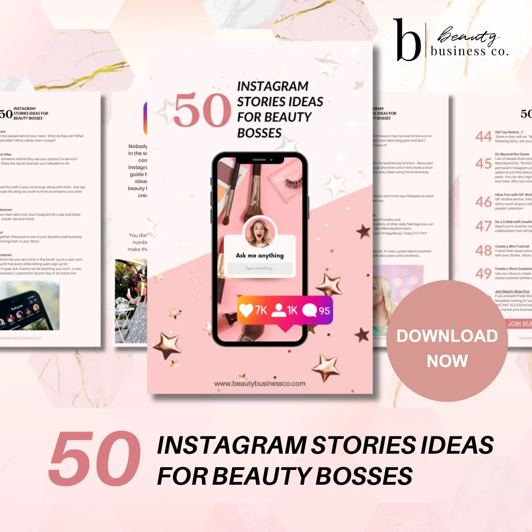 Fortunately, this free guide has you covered! Its filled with a whopping 50 ideas you can put to use right away to grow your beauty business on Instagram and start creating valuable connections with your ideal customers.