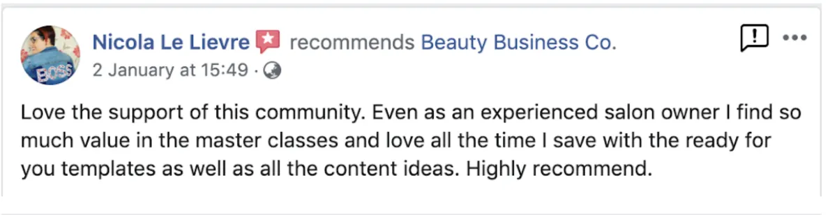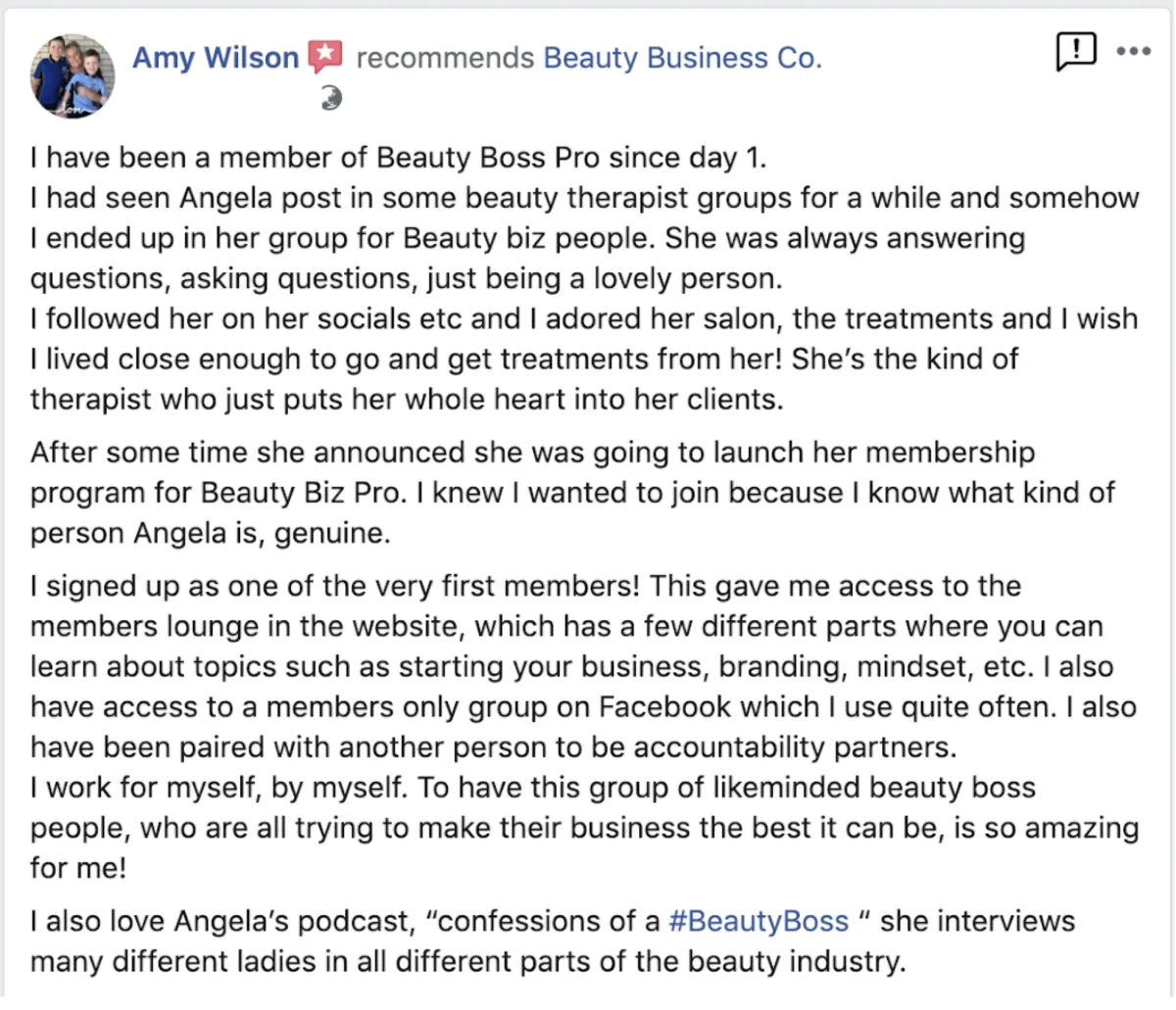 "I highly recommend joining Beauty Boss! I joined because I had absolutely no idea how to do social media."