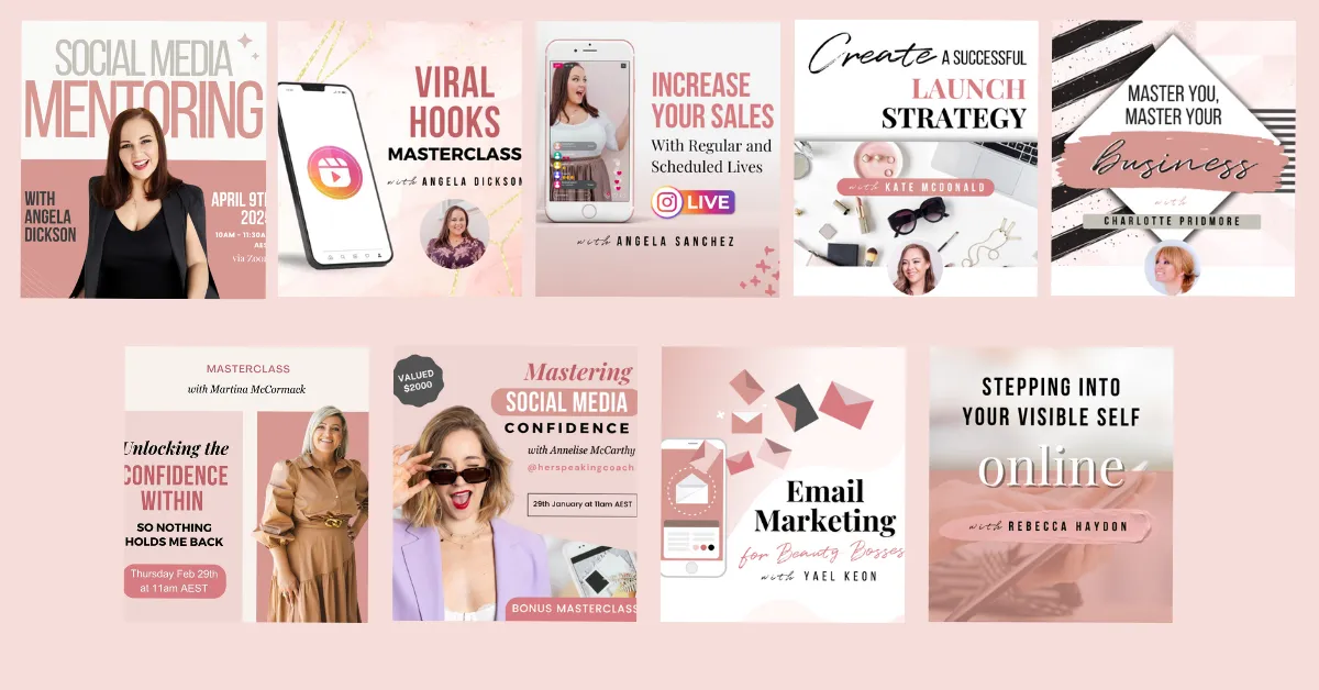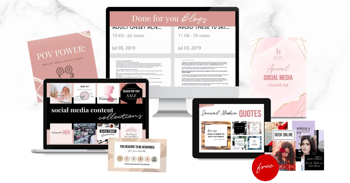 Join Beauty Boss Socials and gain access to experienced social media mentoring, done for you social media graphics, reels and carousels, content calendars and ongoing support.